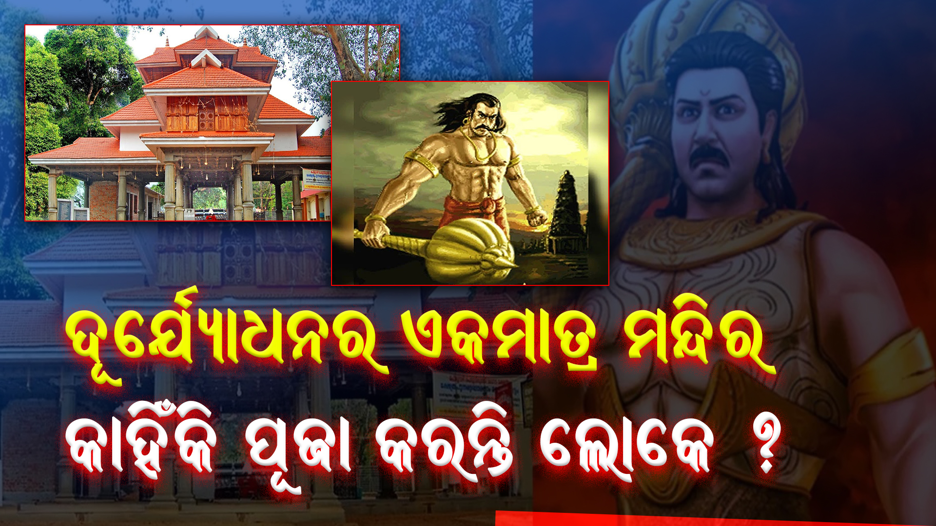ମହାଭାରତର ସବୁଠୁ ଦୁରାଚାରୀ ଥିଲା ଦୁର୍ଯ୍ୟୋଧନ । ତା ଗର୍ବ ପାଇଁ ଧ୍ବଂସ ହୋଇଥିଲା କୁରୁ ବଂଶ । ନିପାତ ହେଇଥିଲେ ତାର 99 ଭାଇ । ମରିଥିଲେ ହଜାର ହଜାର ଯୋଦ୍ଧା । ଭାଇ-ଭାଇ ଭିତରେ ହୋଇଥିଲା ମହା ସଂଗ୍ରାମ । ତେଣୁ ଦୁର୍ଯ୍ୟୋଧନ ନାଁ ଶୁଣିଲେ ସମସ୍ତେ କରନ୍ତି ଘୃଣା । କିନ୍ତୁ ଏପରି ଏକ ମନ୍ଦିର ଅଛି ଯେଉଁଠି ପୂଜା ପାଏ ପାପୀ ଦୁର୍ଯ୍ୟୋଧନ ।
