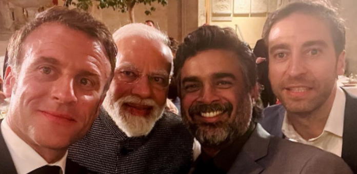 ମାଧବନ ଫ୍ରାନ୍ସ ରାଷ୍ଟ୍ରପତି ଏବଂ ଅନ୍ୟମାନଙ୍କ ସହ ଏକ ଟେବୁଲରେ ବସିଥିବା ପ୍ରଧାନମନ୍ତ୍ରୀ ନରେନ୍ଦ୍ର ମୋଦୀଙ୍କ ସହ ହାତ ମିଳାଇଥିଲେ। ଯାହାର ଫଟୋ ଆପଣ ଦେଖି ପାରୁଥିବେ ।